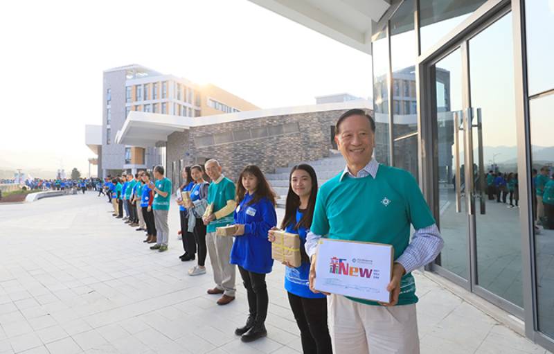 2017年,吳校長參加千人傳書活動,把800包書以人手相傳,全長3.5公里,把書香從舊校園帶到新校園