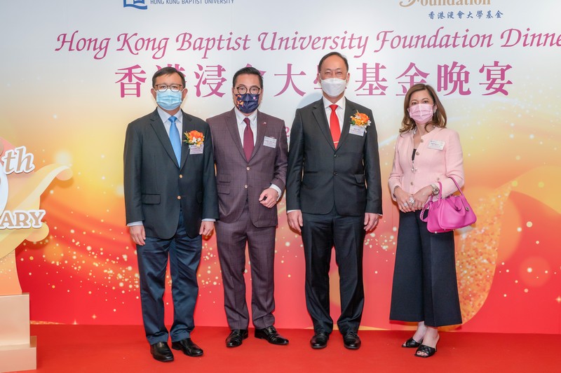 史博士(左四)與浸大多位高層認識多年,圖為2021年出席衞炳江校長就職禮